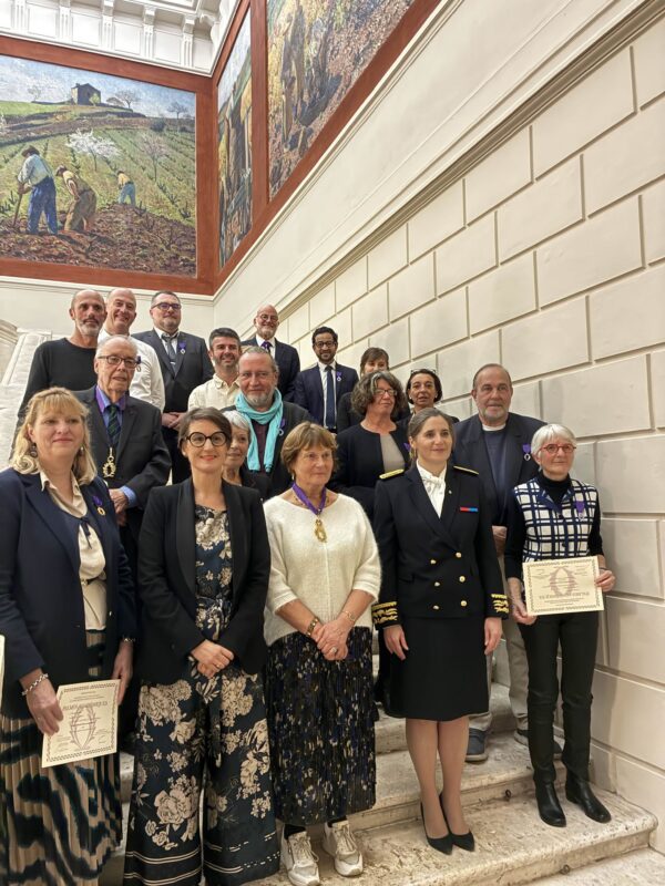 A l’issue de la cérémonie, la traditionnelle photo des récipiendaires entourant Mme Claire Raulin, préfète du Lot.